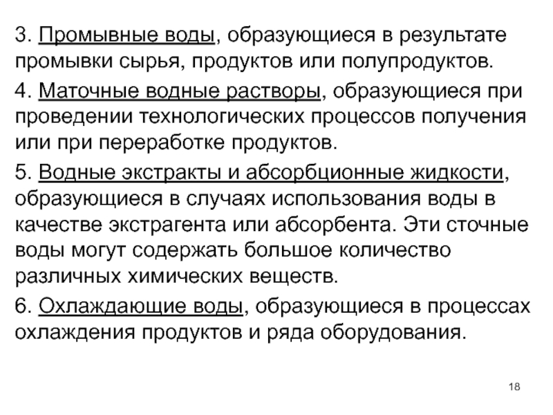Слайд 183. Промывные воды, образующиеся в результате промывки сырья, продуктов или
