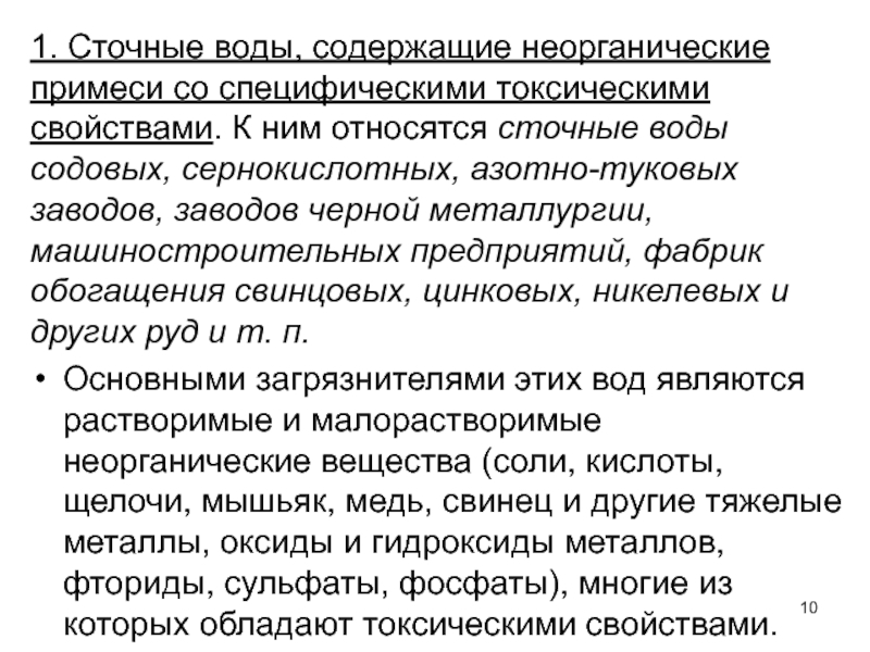 Слайд 101. Сточные воды, содержащие неорганические примеси со специфическими токсическими свойствами.