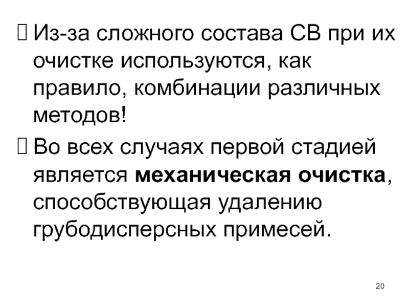 Слайд 20Из-за сложного состава СВ при их очистке используются, как правило,