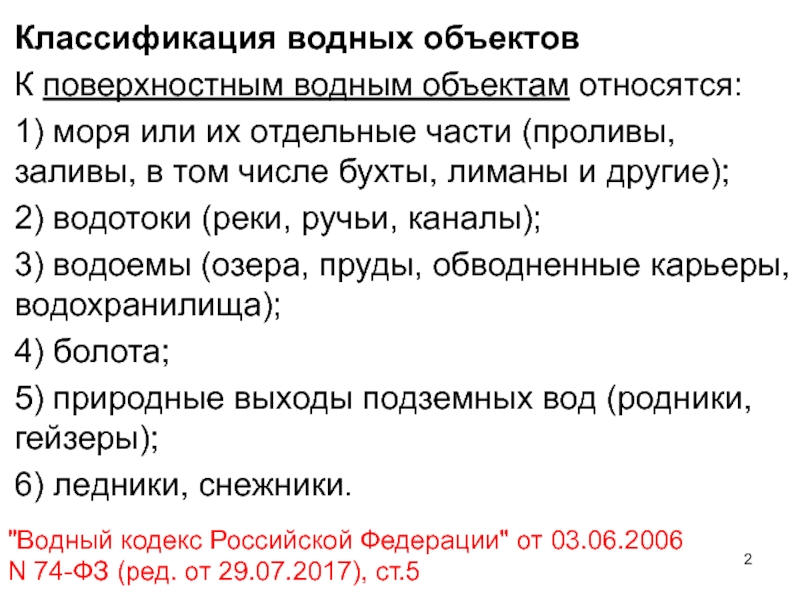 "Водный кодекс Российской Федерации" от 03.06.2006 N 74-ФЗ (ред. от 29.07.2017), ст.1
