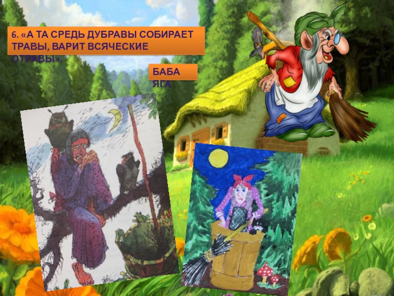 Слайд 106. «А та средь дубравы собирает травы, варит всяческие отравы».