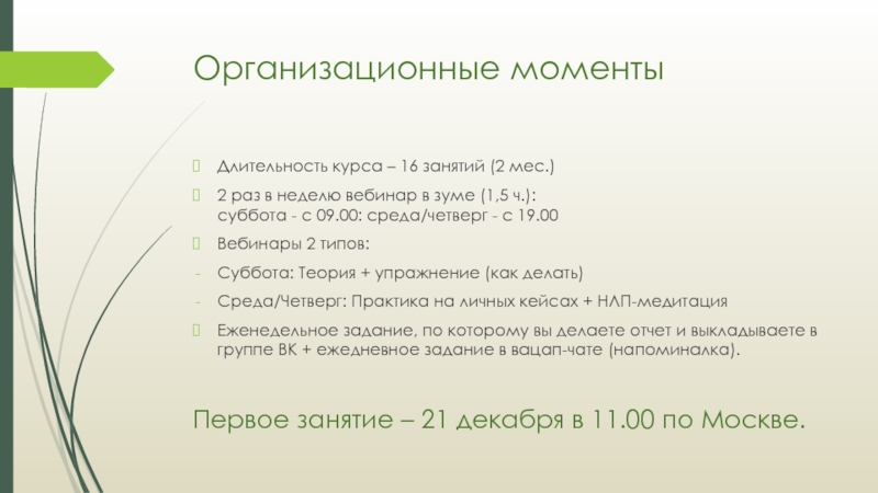 Первое занятие – 21 декабря в 11.00 по Москве.