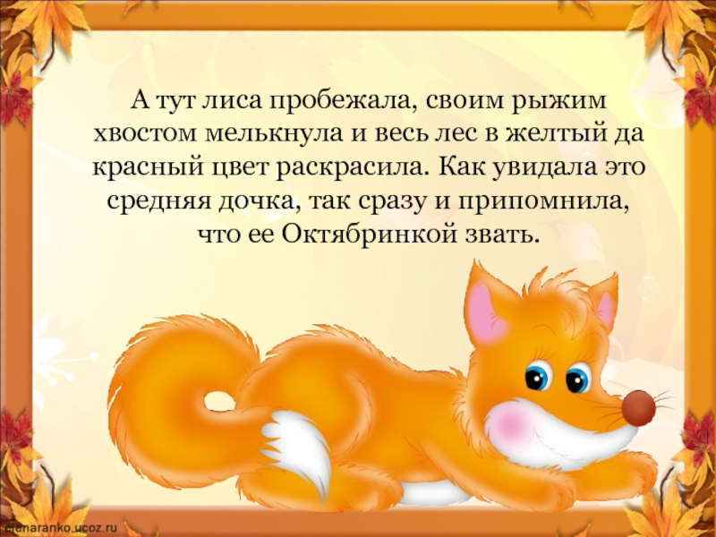 Слайд 10А тут лиса пробежала, своим рыжим хвостом мелькнула и весь
