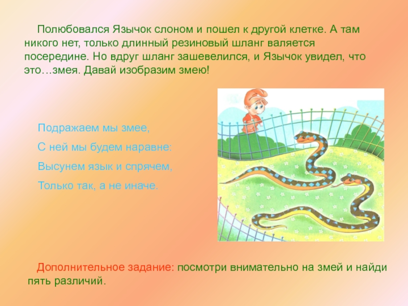 Дополнительное задание: посмотри внимательно на змей и найди пять различий.