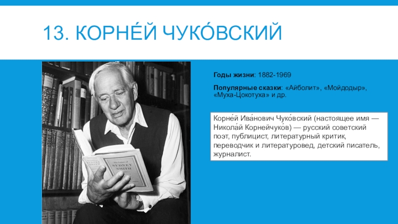 Корне́й Ива́нович Чуко́вский (настоящее имя — Никола́й Корнейчуко́в) — русский