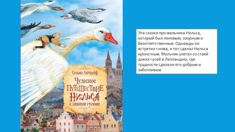 Слайд 27Эта сказка про мальчика Нильса, который был ленивым, озорным и