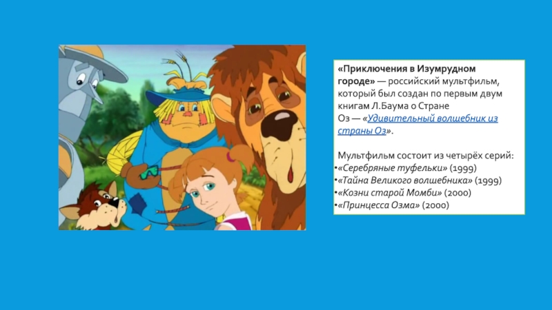 Слайд 8«Приключения в Изумрудном городе» — российский мультфильм, который был создан по первым