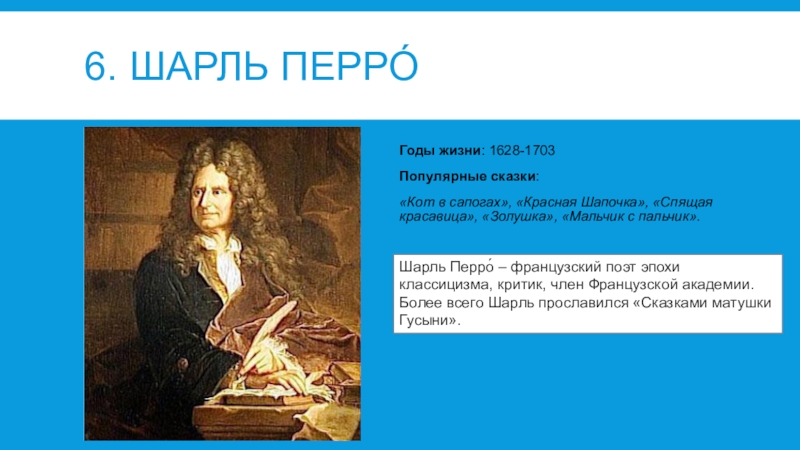 эпохи классицизма, критик, член Французской академии. Более всего Шарль прославился «Сказками матушки Гусыни».