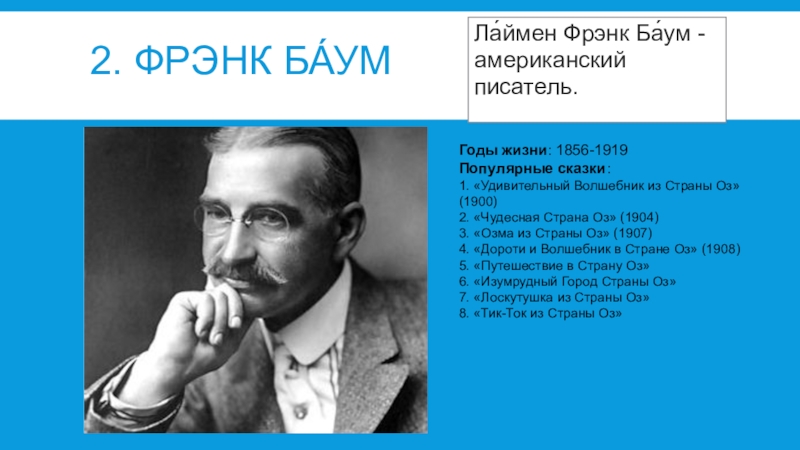 Ла́ймен Фрэнк Ба́ум - американский писатель.