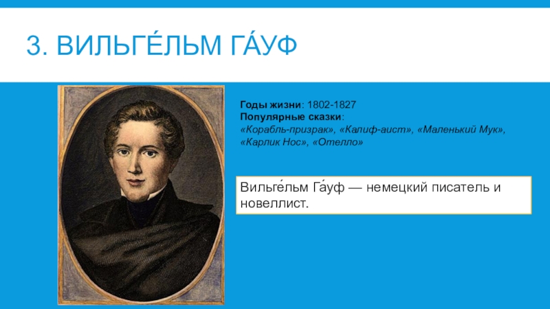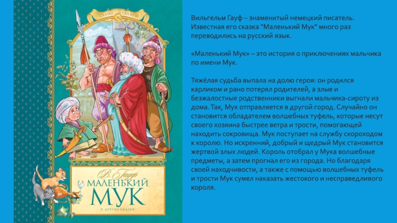 Слайд 13Вильгельм Гауф – знаменитый немецкий писатель. Известная его сказка "Маленький