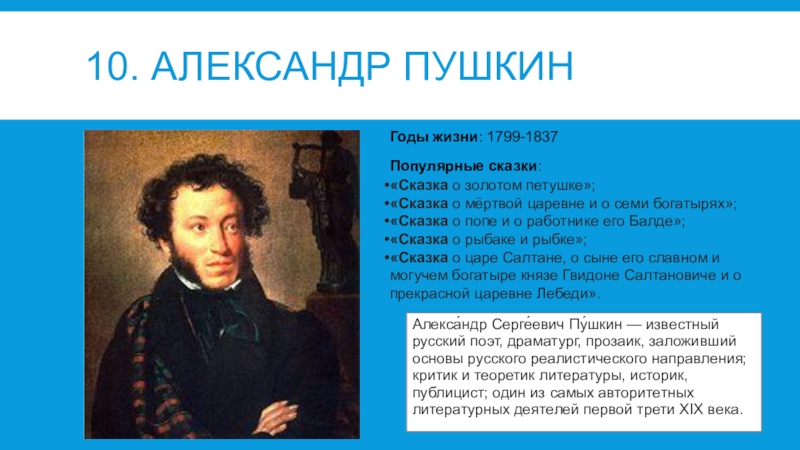 Алекса́ндр Серге́евич Пу́шкин — известный русский поэт, драматург,