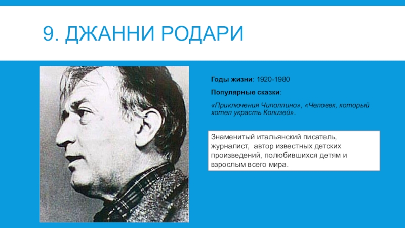 Знаменитый итальянский писатель, журналист, автор известных детских произведений, полюбившихся