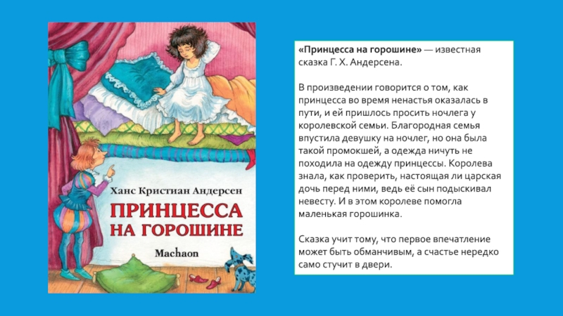Слайд 19«Принцесса на горошине» — известная сказка Г. Х. Андерсена.