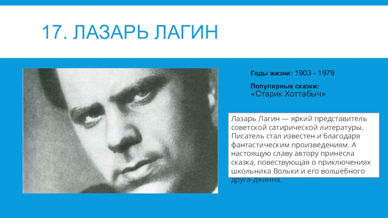 Лагин — яркий представитель советской сатирической литературы. Писатель стал известен