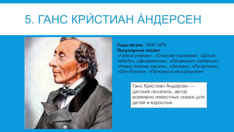 Ганс Кри́стиан А́ндерсен — датский писатель, автор