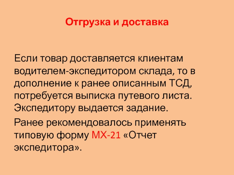 Если товар доставляется клиентам водителем-экспедитором склада, то в