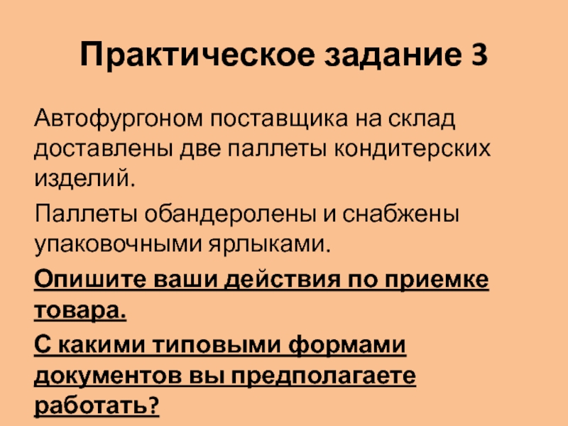 Автофургоном поставщика на склад доставлены две паллеты кондитерских