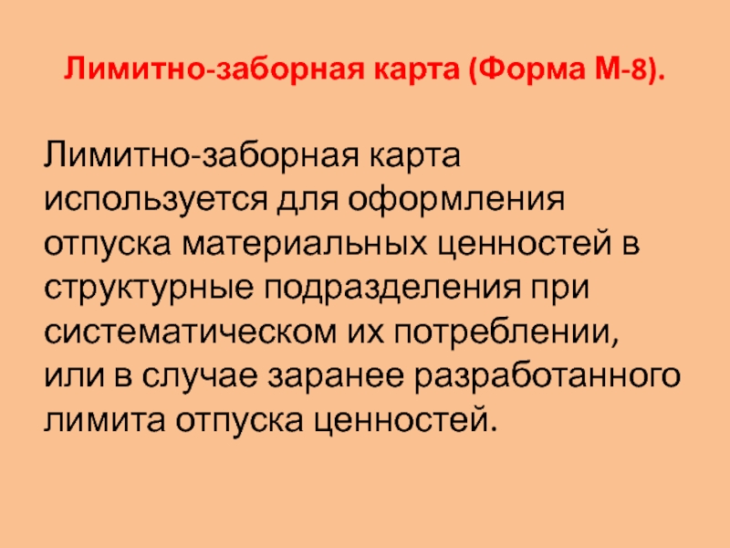 Слайд 55Лимитно-заборная карта (Форма М-8).