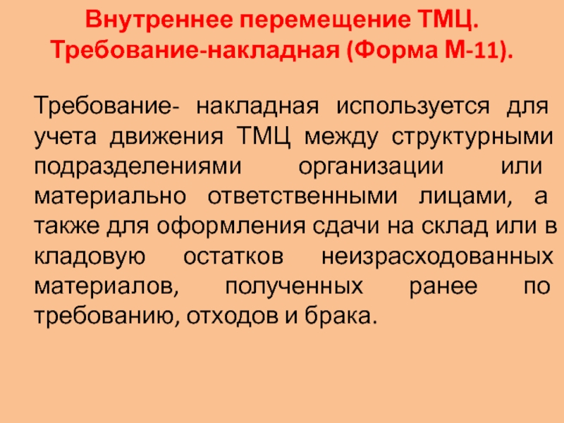 ТМЦ между структурными подразделениями организации или материально ответственными лицами, а