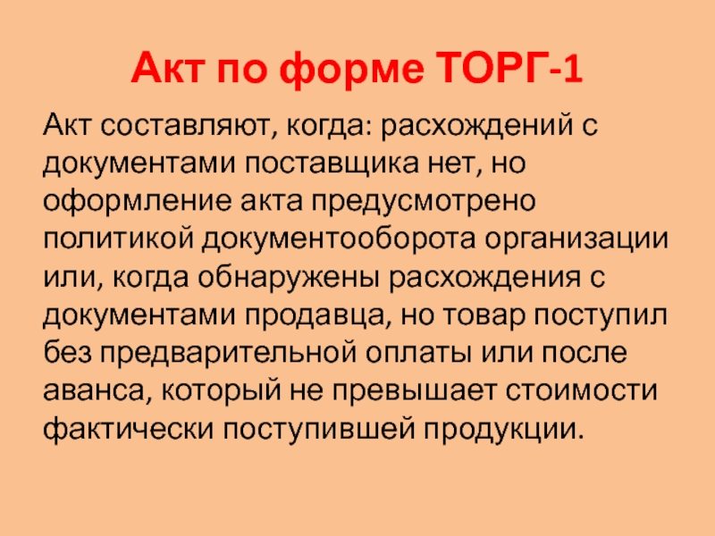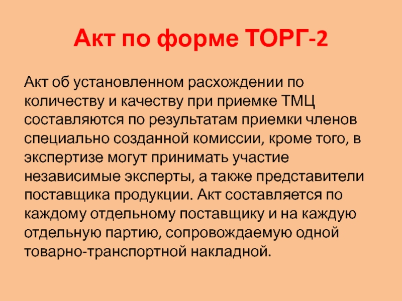 ТОРГ-2 «Акт об установленном расхождении по количеству и качеству