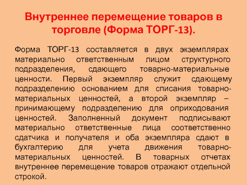 Слайд 53Внутреннее перемещение товаров в торговле (Форма ТОРГ-13).