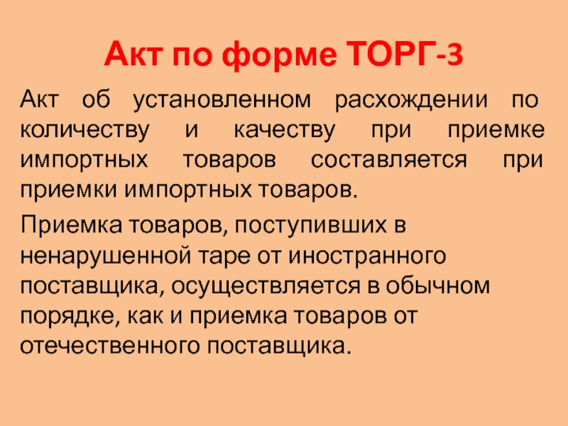 ТОРГ-3 «Акт об установленном расхождении по количеству и качеству при приемке импортных товаров»
