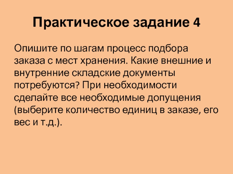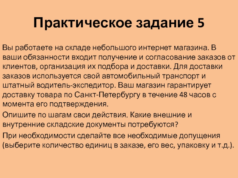 При необходимости сделайте все необходимые допущения (выберите количество единиц в заказе, его вес, упаковку и т.д.).