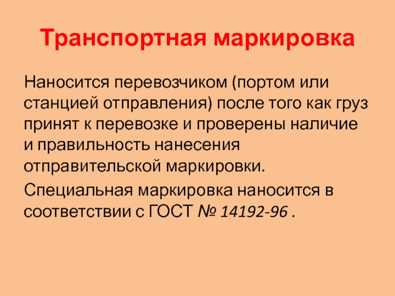 Специальная маркировка наносится в соответствии с ГОСТ № 14192-96 .