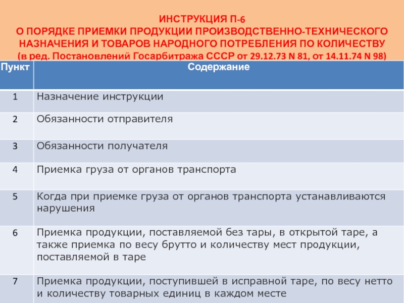 Инструкция П-6 – Инструкция о порядке приемки продукции производственно-технического