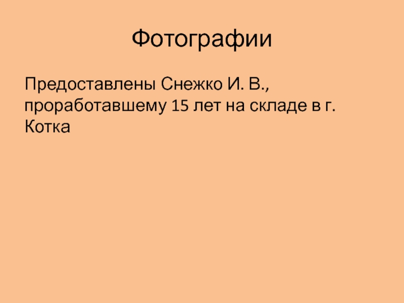 Предоставлены Снежко И. В., проработавшему 15 лет на складе в