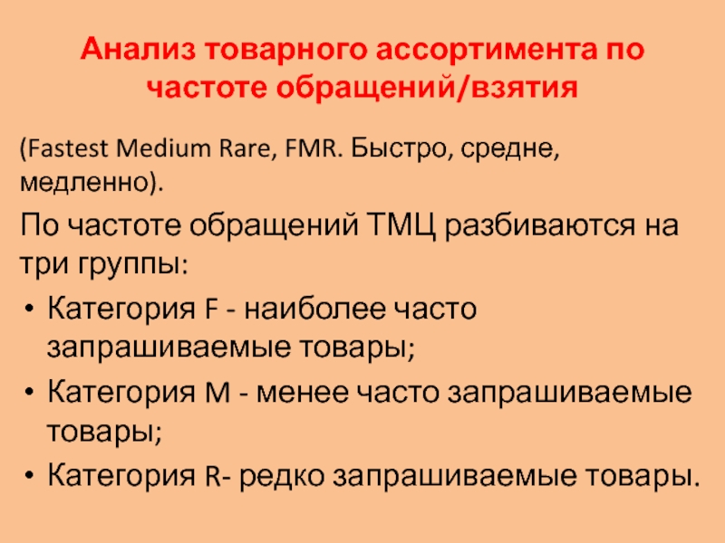 Слайд 50Анализ товарного ассортимента по частоте обращений/взятия
