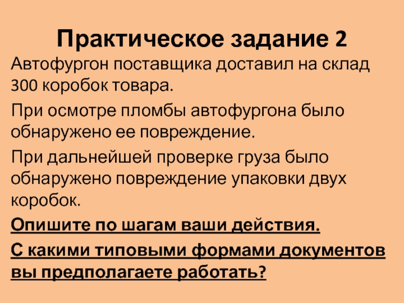 Опишите по шагам свои действия. Какие внешние и внутренние складские документы потребуются?