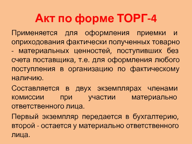 ТОРГ -4 «Акт о приемке товара, поступившего без счета поставщика»