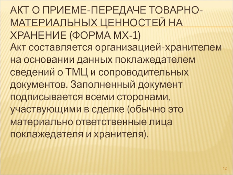 хранить вещь, переданную ей другой стороной (поклажедателем), и возвратить эту