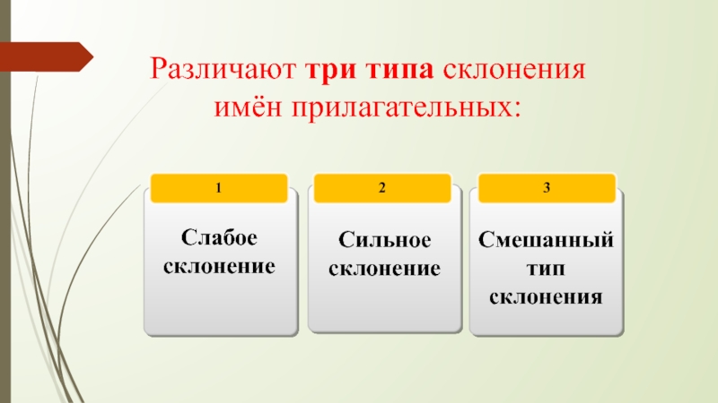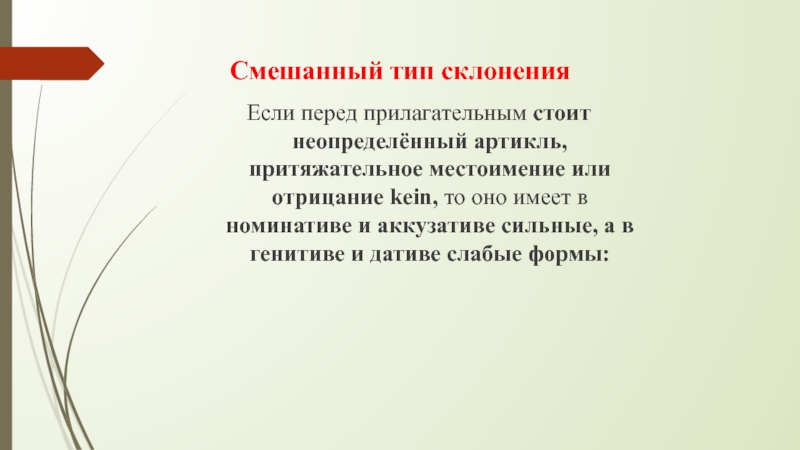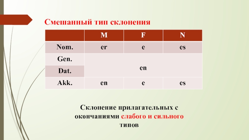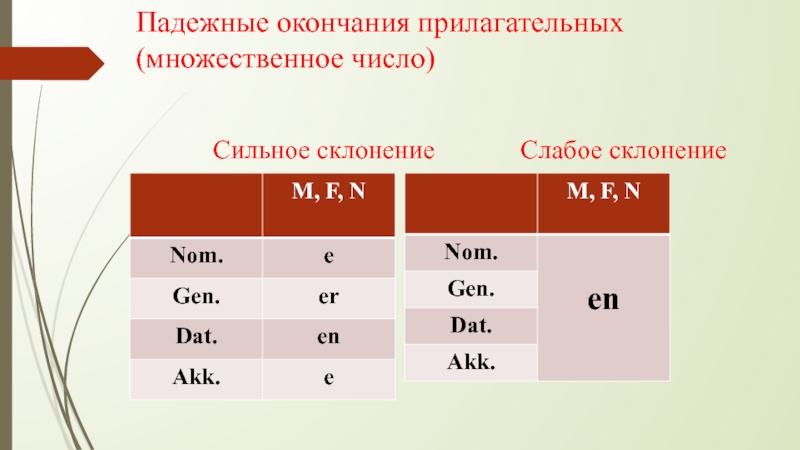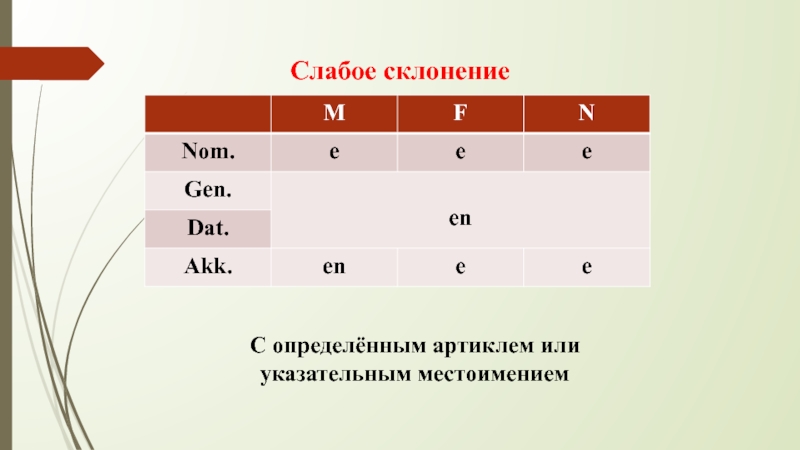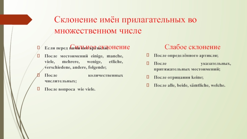 По слабому склонению прилагательное склоняется тогда, когда перед ним