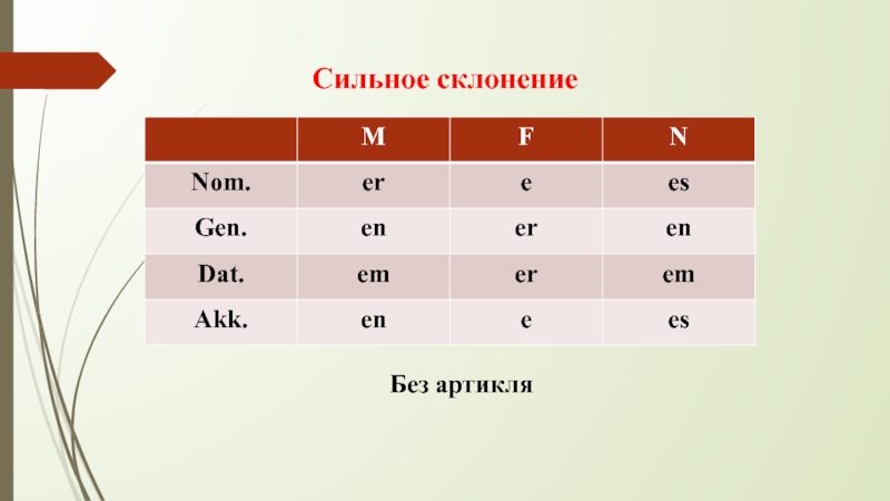 или отрицание kein, то оно имеет в номинативе и аккузативе