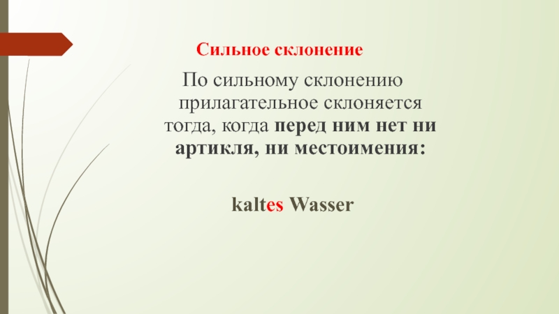 По сильному склонению прилагательное склоняется тогда, когда перед ним