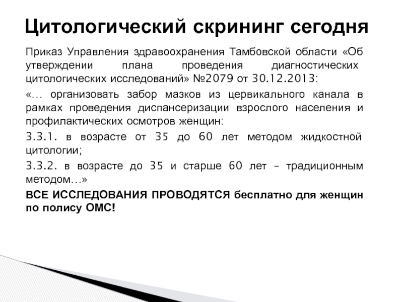 Цитологический скрининг сегодня