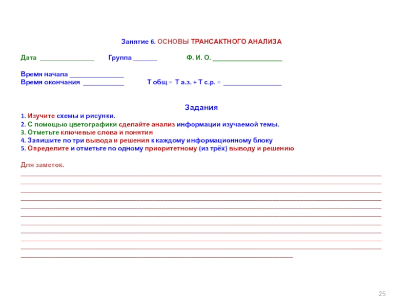 7. Трансактный анализ. Психологическая структура личности (затраченное время ________)