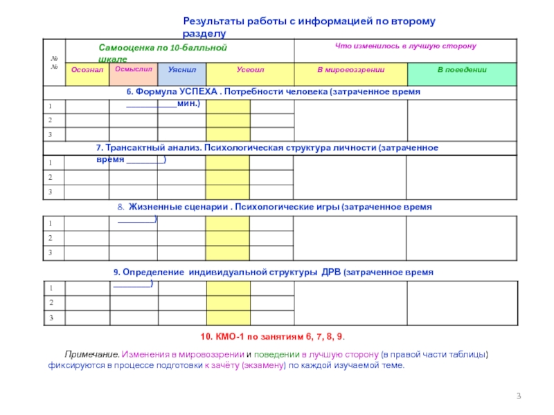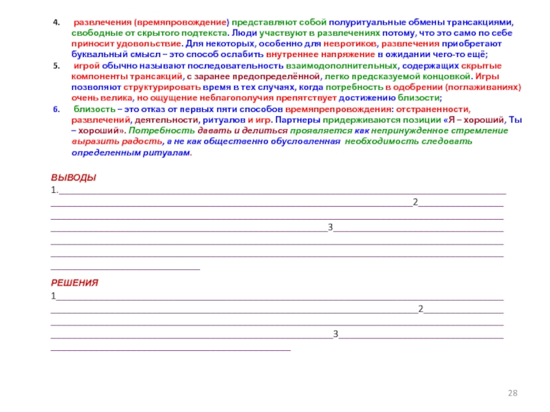 8. Жизненные сценарии . Психологические игры (затраченное время ________)