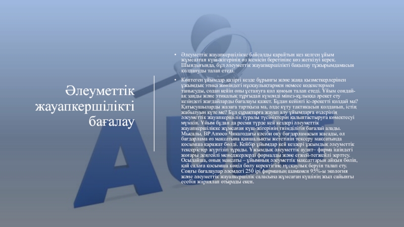 Слайд 1ҰЙЫМНЫҢ ӘЛЕУМЕТТІК ЖАУАПКЕРШІЛІГІ. ІСКЕРЛІК ЭТИКА