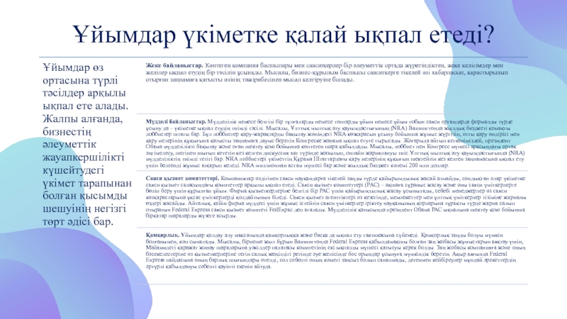 Слайд 28Ұйымдар үкіметке қалай ықпал етеді?