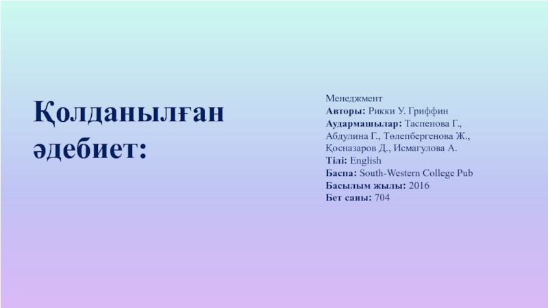 Аудармашылар: Таспенова Г., Абдулина Г., Төлепбергенова Ж., Қосназаров