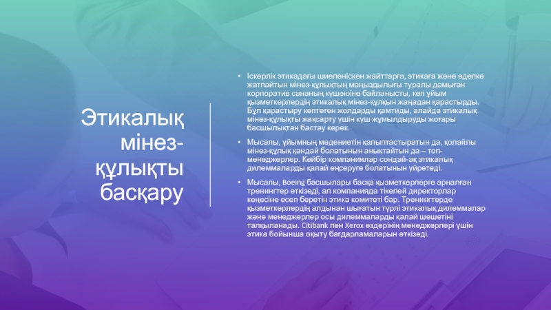 Слайд 3Ұйымдардағы жеке бас этикасы