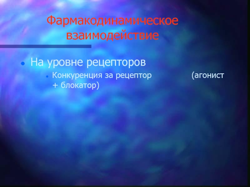 Слайд 28Фармакодинамическое взаимодействие