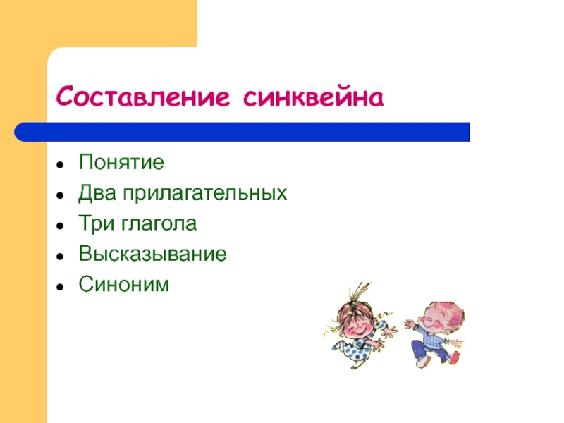 Составление синквейна  ПонятиеДва прилагательныхТри глаголаВысказываниеСиноним