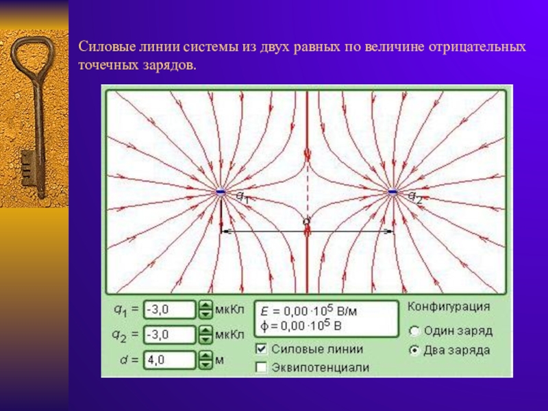 Слайд 15Силовые линии системы из двух равных по величине отрицательных точечных