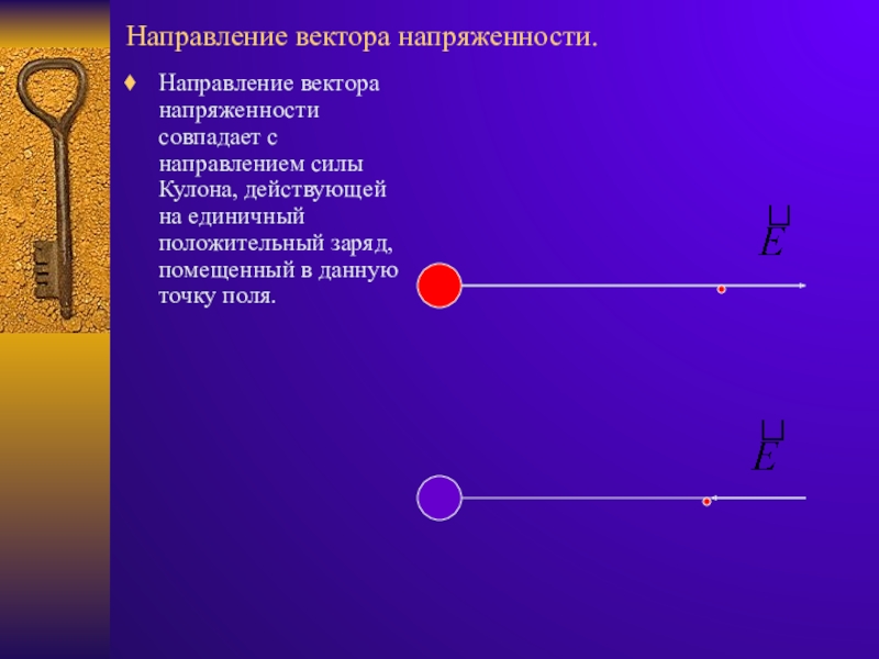 Слайд 9Направление вектора напряженности.