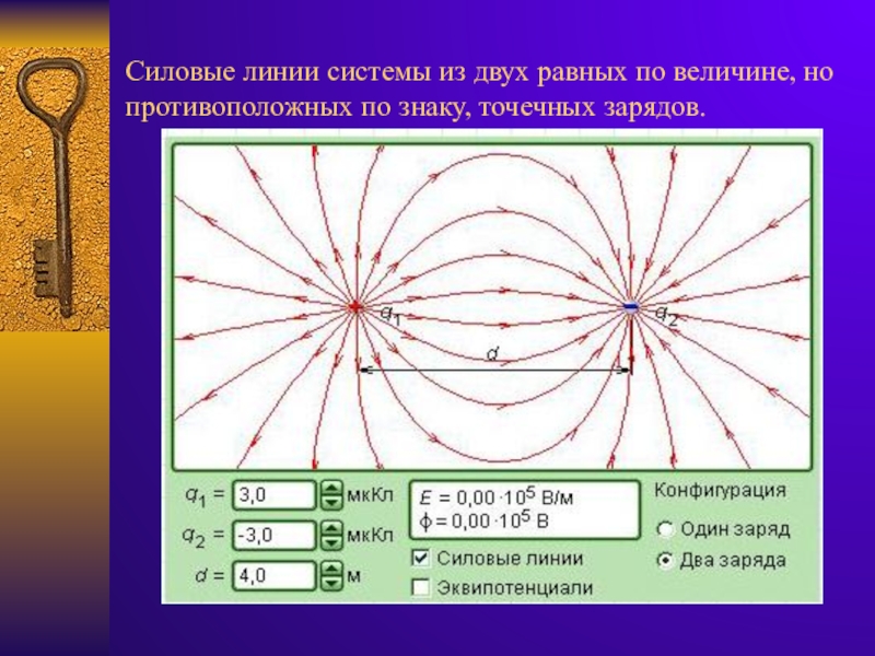 Слайд 18Силовые линии системы из двух равных по величине, но противоположных