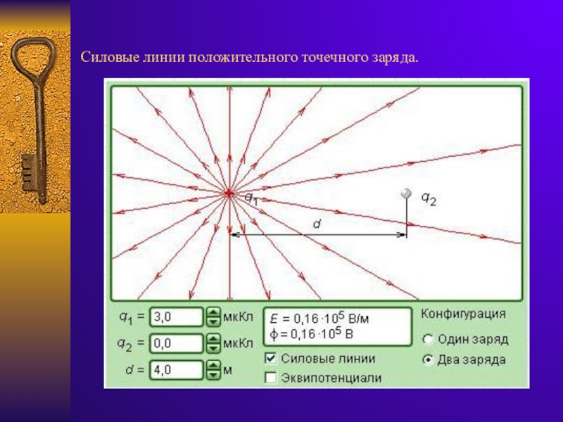 Слайд 14Силовые линии положительного точечного заряда.